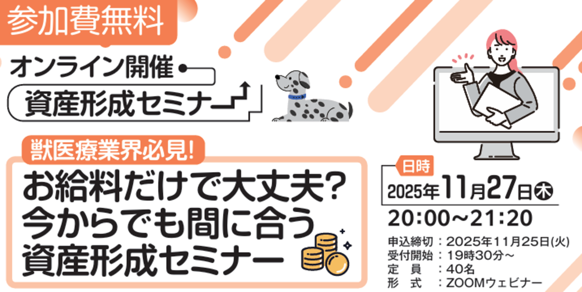 【2025/11/27】獣医療業界必見! お給料だけで大丈夫?今からでも間に合う資産形成セミナー