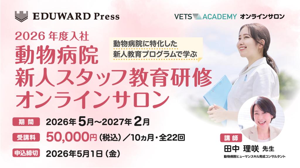 専門職として働く意識を高める!2026年度入社動物病院新人スタッフ研修オンラインサロン