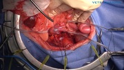 症例はミニチュア・ダックスフンド、11歳齢、避妊済雌、体重8kg。 血尿を主訴に紹介来院。CT検査所見から右腎臓腫瘤病変と後大静脈内浸潤が認められ、外科治療が適応となった症例です。 手術では後大静脈の一時遮断による腫瘍栓の引き抜きと、腎臓摘出術を実施しました。後日、病理組織学検査の結果、血管肉腫と診断された症例です。